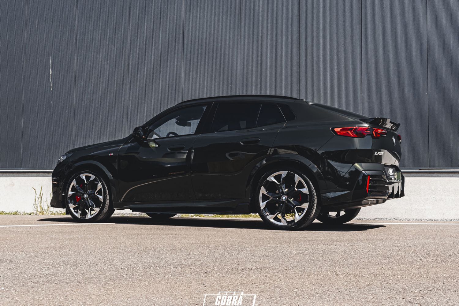 We hebben de BMW iX2 eDrive20 30 mm aan de voorzijde en 25 mm aan de achterzijde verlaagd met onze Cobra Suspension verlagingsveren.